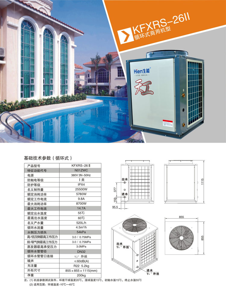 2. 换热器:将从空气源热泵机组产生的高温高压气体与室内的冷媒进行热交换,从而使室内温度升高。