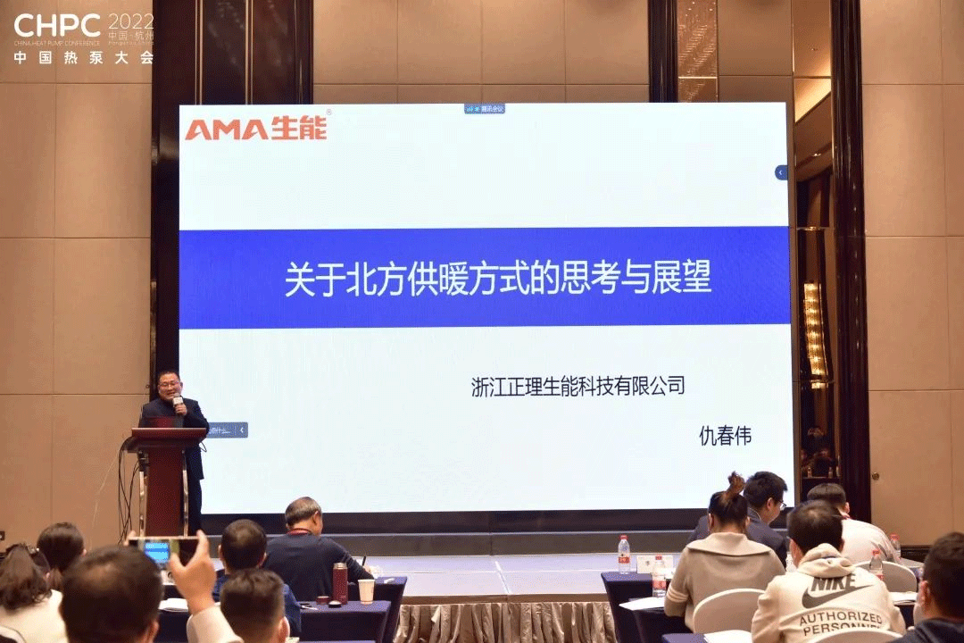 会上,生能空气能研发中心总监仇工在现场论坛上分享了《关于北方供暖方式的思考与展望》,并从背景、供暖设备演变、各类型建筑供暖方式、低温地区供暖设备探讨等方面展开来讲,同时指出北方采暖要根据建筑结构特点、地域差异合理选取机组。