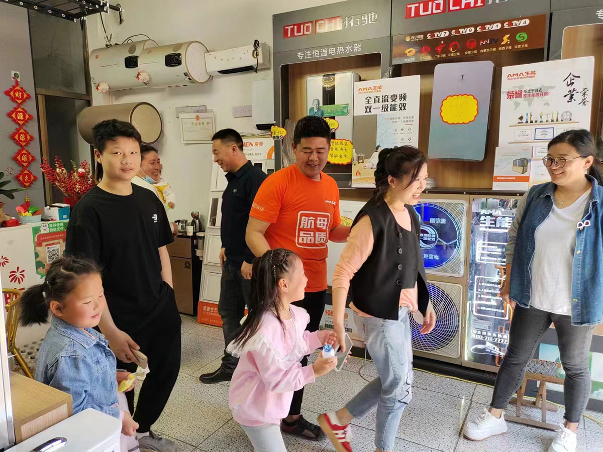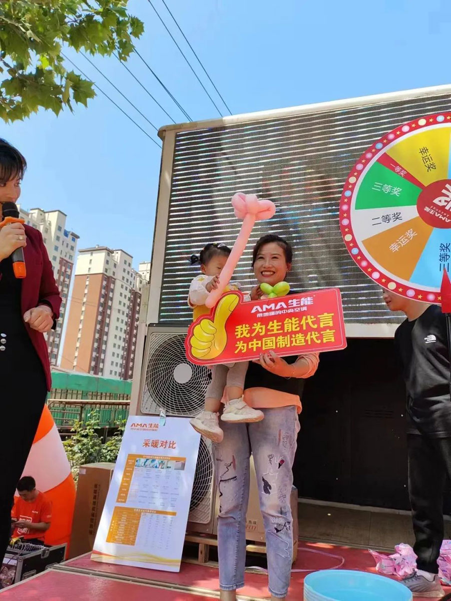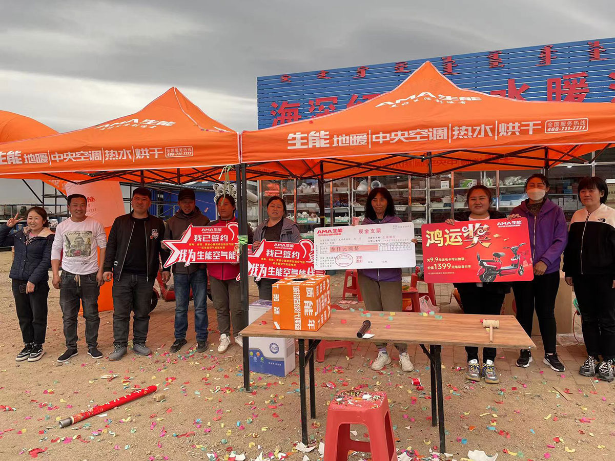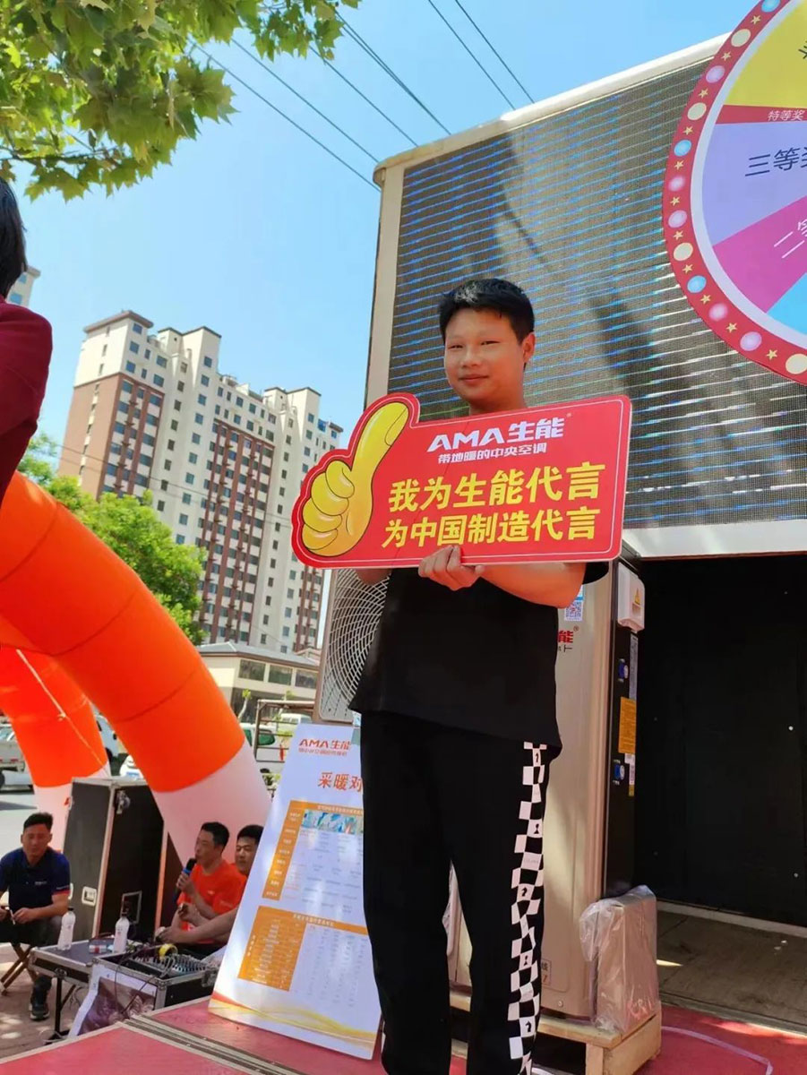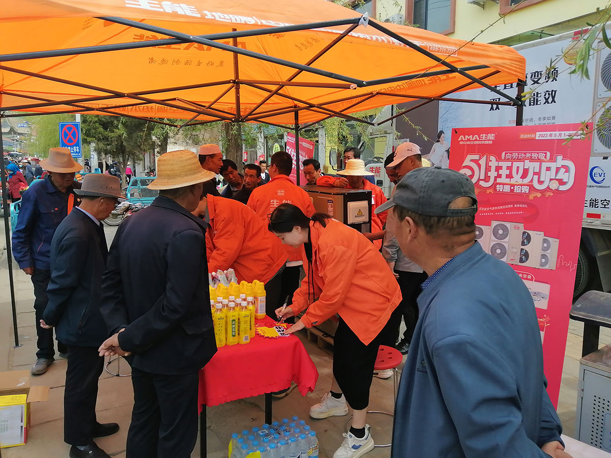 各终端门店在生能空气能公司的安排协助下,结合自己所在地实际情况,分别在“五一”假期开展狂欢购、大联动、新店开业、小区地推、露天表演推广等各种活动,为客户带来实惠和优质体验,人气旺旺、收获满满,燃爆市场。