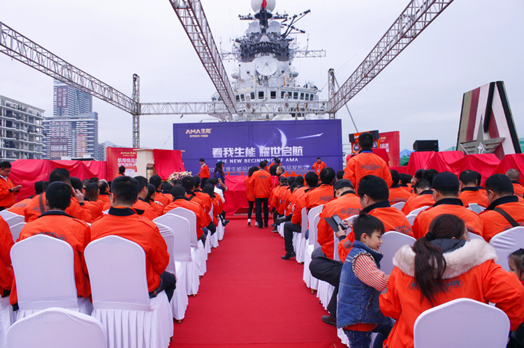 2015年12月15日早晨,在深圳明斯克航母舰板上,百位精英战略合作伙伴和生能高层组整齐着登舰装依次登舰入场,威严壮观如阅兵。但这不是一场军事演习,而是浙江正理生能科技有限公司召开的“看我生能,耀世启航”品牌战略升级暨新品发布会。入场仪式中,生能高层包括董事长黄道德、营销总监雷火生、营销总监孙三华及精英伙伴共同为生能“AMA”logo注水,寓意发布会第二主题——合众力,共启航。