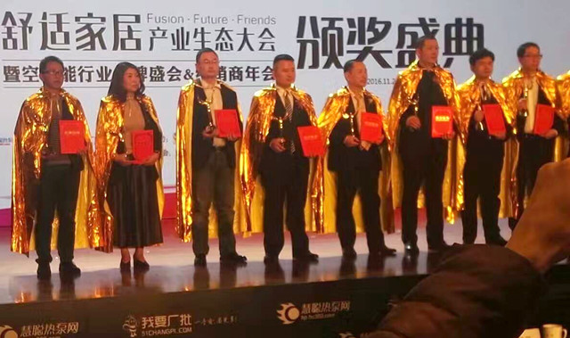 11月29日,2016年度中国舒适家居产业生态大会暨第九届空气能行业品牌盛会在北京钓鱼台国宾馆隆重举行。在颁奖盛典上,生能空气能荣获2016年度中国空气能行业领军品牌和2016年度中国空气能行业北方采暖示范奖两大重量级奖项,生能董事长黄道德被评为2016年度中国空气能行业领军人物!