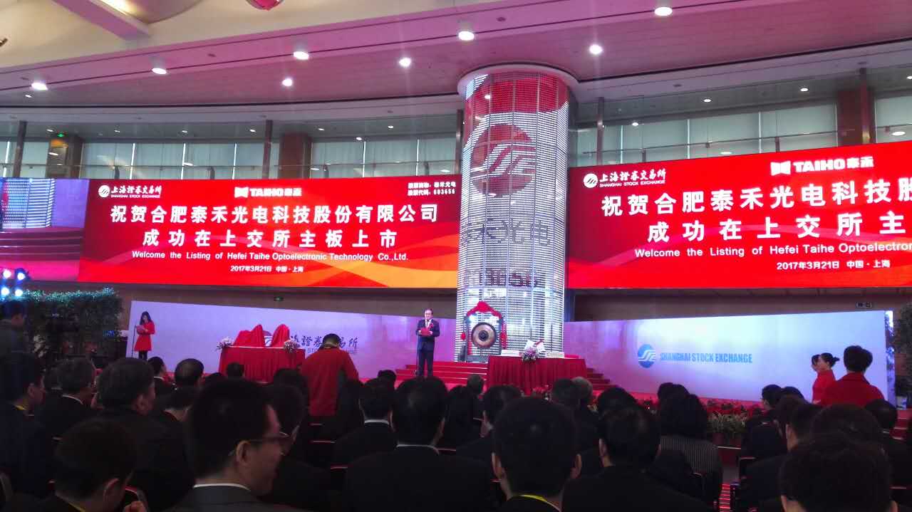 3月21日,合肥泰禾光电科技股份有限公司在上海证券交易所主板上市,乐清市市长方晖和我司董事长黄道德受邀出席上市仪式。